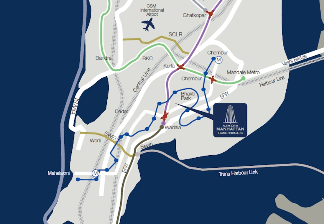 At Wadala East - By Ajmera GroupAjmera Manhattan is one of Mumbai’s most prestigious residential projects, spread over 100 acres in Wadala. Inspired by the luxurious feel of Manhattan, it offers an elevated urban lifestyle for those who enjoy an international lifestyle. The 2 and 3 BHK homes at Ajmera Manhattan combine elegance and practicality, with premium amenities such as multi-level podium parking, landscaped gardens, an Evander Holyfield Gym, a yoga deck, and a pet park. The township is ideally located near top schools, hospitals, and colleges, with excellent connectivity to all parts of Mumbai. It offers the perfect balance of comfort, luxury, and convenience in the heart of the city.